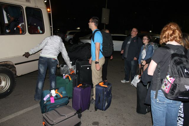 On the flight to Nairobi everyone completed their Visa application for admittance into the country so it was getting to be very “real.” After the plane landed we made our way off the plane and managed to “find” a shorter line to purchase our Visas. This process was almost completely painless. We made our way downstairs and this is where the wait began for all of our baggage. As the rest of the team made their way to the baggage carousel I stuck my head out past customs and saw a very welcome sight … Sandy and Karen Baird. They were reading and waiting on us with our transportation. We waited a while but VERY thankful that all of our luggage made it (I heard later that we are the first of the groups to come in so far that has been this fortunate). I told the group to wait until we were all ready and we would go through customs together. This is always a crapshoot. I was able to talk to the person facilitating customs and he let us all go through without stopping anyone. God is good!!!