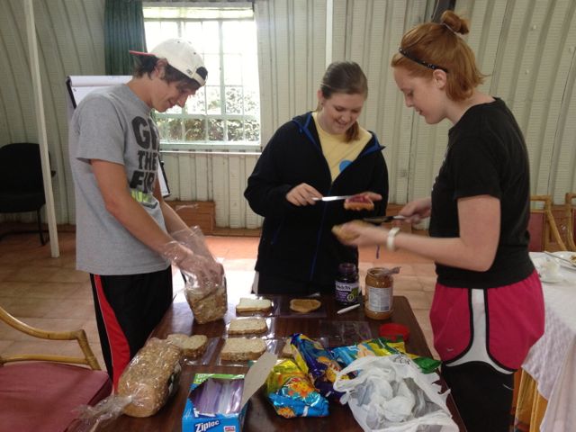 Everyone made it to breakfast on time and once again had our choice of fruit and cereal to go along with eggs however we liked them. This morning we also were able to try a few Kenyan items which I don’t ever remember hearing the name for. One was basically a rolled up, super thin pancake. The other was kind of like an egg roll with chicken inside and a little spice. Both were very good. We established a rule that the first ones done with breakfast have the joy of preparing the peanut butter and jellies for lunch. So we basically eat as slow as possible.