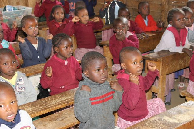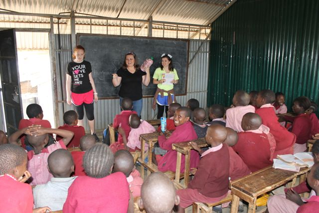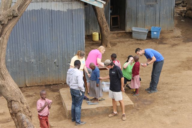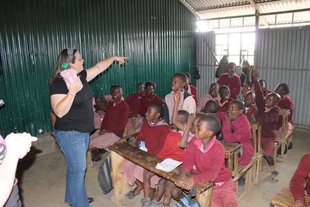 After a devotion by Karen Baird on Hebrew 4:12 and talking about Massai double-edged spears we were ready to take on the world. We made our way back to Kibera where our team served in two different ways. One group of three went from classroom to classroom and taught a short lesson and led the class in a few songs. Every class you walked into you were greeted by the students with much respect. They listened attentively to the story, especially after Tammy pulled out a jar full of candy she used for illustration.