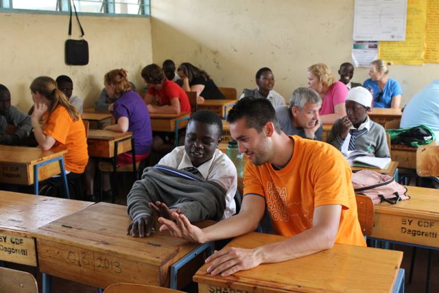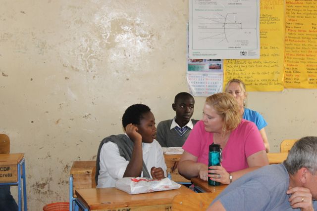 After my lunch we made our way back to the church to pick up the ladies working with Biashara and headed to pick up the rest of the team at the sports camp. From there we went to a local public high school where there are several students from Kibera attending on scholarship with the Penda Project (www.kiberapendaproject.com). Penda is the Swahili word for love. In a nutshell, it costs money to attend school in Kenya. Even at New Hope Academy there is a fee. The fees increase as the students go to high school. Many of the students from Kibera can’t afford to go to high school. The Penda Project helps finds sponsors (mostly in the USA) to pay for students to attend high school. On average the cost is $400 per year (or $33 per month). (For those curious North Park supports 4 students to attend high school.) Many have said our time with the high schoolers today was their favorite. We had an hour to “tutor” these students.
