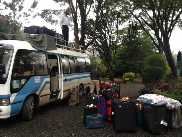 Our driver was there and ready to help us get everything loaded up. Our goal was to leave by 8:00 and we pulled out from the Guest House at 8:01, but not until one last group picture from Kenya.