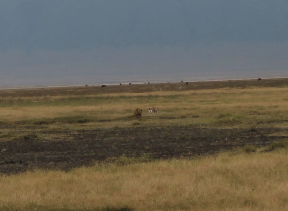 Our guided told us they were all likely from the same pride. Of in the distance we noticed to gazelle fighting with one another. They were totally unaware of their surroundings. We all got excited as we saw one of the lionesses crotch down and slowly start walking toward these two gazelles. She got within thirty feet of them and shot off like a cannon.