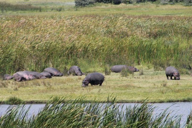 We stopped for lunch right at noon and we were all starving. We parked the jeeps and got out to eat and a place in the crater known as hippo pond.